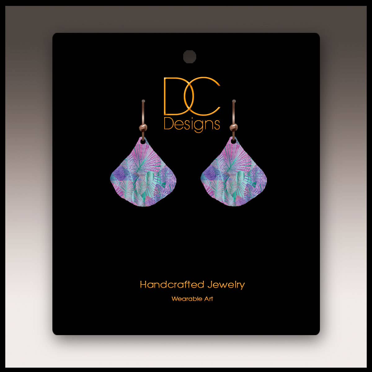 Our very stylish earrings are ultra-light weight & water resistant. Each earring is a handcrafted UV giclée printed both sides on stainless steel. We use hypoallergenic antique copper ear wires. Each pair comes on an elegant black card.
